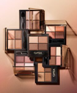 エクセルの代名詞「スキニーリッチシャドウ」が初のリニューアル。肌なじみの良いブラウン~ベージュ系だけで作った”捨て色なし”の配色はそのままに、色展開・ツヤ感・密着力のすべてを1200回もの試作を重ねてアップデートする。