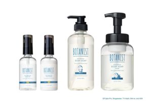 ボタニストは、全5アイテムに22世紀の未来から来た「ドラえもん」をデザイン。シャンプーとトリートメントのセット、ボディソープ、ボディーソープフォーム、ヘアオイル、ヘアミルクが展開される。シャンプーとトリートメントのセットは、髪悩みや好みの仕上がりによって選べるモイスト・スムース・ダメージケアの3種を揃える。